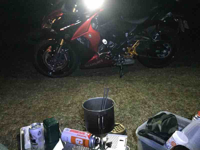今回のテントは中国製安物スカート付きで、地面との隙間から風が吹き込まないので外気温が下がっても寒さは感じません。