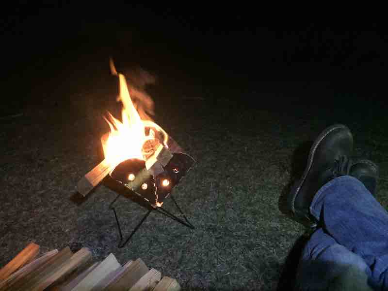 4月という季節と標高が1000mくらいあったので夜は少し肌寒かったが、薪を焚いて外で1〜2時間くらい夜空と暗闇を楽しみました。