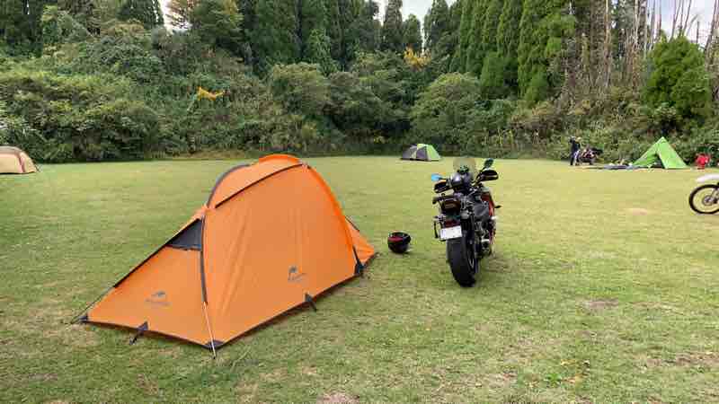 テントを張って、重いキャンプ道具をテントの中に入れ、バイクを少し軽くして行動することにしました。