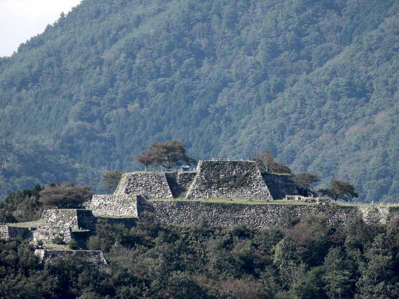 全く面白みのない写真ですが…….さらに望遠にすると城跡で観光している人の姿が覗けました。