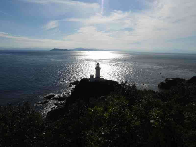 灯台まではとても行く元気が出ずに、逆光の写真だけで我慢することにしました(椿山展望台)。