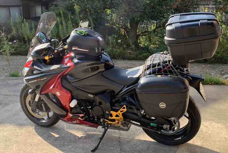 写真は出発前のスズキGSX-S1000F旅仕様です。
