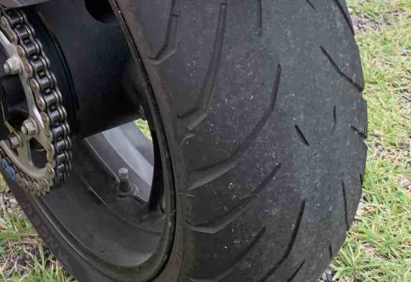 リアタイヤのスリップサインが発生を通り越して、中心部分はツルツルの状態になってしまいました。
