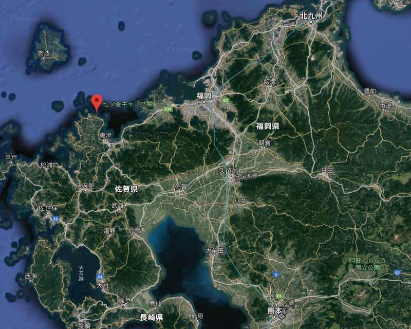 九州に入って、佐賀県の無料キャンプ場 七ツ釜キャンプ場(佐賀県唐津市屋形石)に泊まることにしました。
