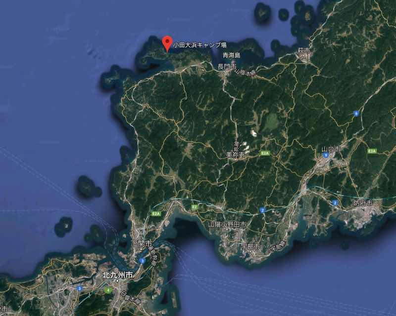 山口県の無料キャンプ場 小田大浜キャンプ場(山口県長門市油谷川尻)で泊まることにしました。